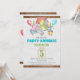 © Socialite Designs & LICENCORS. Fun, colourful and whimsical animal birthday party invitation with charming animals holding ballons and flowers, and a house in the background. A wonderful invitation for a young boy's birthday party.