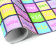 Create a one-of-a-kind gift with this personalised wrapping paper! It features up to nine customisable typography fields, allowing you to include the words, names, or numbers of your choice. The current design highlights playful words such as "six," "toy," "pet," "fun," "kid," "God," "joy," "win," and "wow." With its colourful and vibrant layout, this wrapping paper is perfect for kids' birthdays or other special occasions. Its pastel-coloured squares create a cheerful and playful atmosphere that will bring joy to your celebrations. Make your gifts stand out with this delightful and personalised wrapping paper!