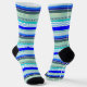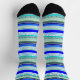Fun blue striped socks. Many shades of Blue stripes are mixed with fun patterns with splashes of colours in polka dots, zigzags, and chequered patterns. Colourful socks in fun patterns make a statement and are a conversation starter. Lovely blue pattern play striped socks for a wedding, office, job interview, date night, or just went you want to feel super fun!