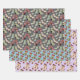 3 fun and whimsical sheets of Christmas wrapping paper.