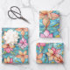 Fun colourful stained glass window flower patterns wrapping paper sheet mix. Beautiful gift wrap, crafting papers.