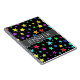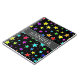 This fun, multicolored design features a pattern of star shapes of various sizes and coloured a variety of colours on a black background. It also features a personalised name.