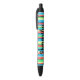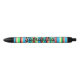 Fun colourful stripes of vibrant green, yellow, red, black, and turquoise blue on your own custom personalised pens - great for school or the office, where pens often go missing. Shown is the editable name, Samantha, in black script handwritten lettering. The text colour, size, and style is editable using the Design Tool. Designed by Heard_. #PersonalizedPen