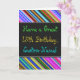 This fun, colourful and whimsical birthday-themed greeting card design features a warm birthday wish like "Have a Great 15th Birthday, Custom-Name!" on the front. The name on the front can be customised. The top and bottom of the front feature a vibrant, multicolored stripe pattern. The inside features a customisable birthday message. A greeting card like this could be a fun way to deliver birthday wishes to somebody who is celebrating their fifteenth birthday. [~Z0000269]