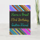 This fun, colourful and whimsical birthday-themed greeting card design features a warm birthday wish like "Have a Great 53rd Birthday, Custom-Name!" on the front. The name on the front can be personalised. The top and bottom of the front feature a vibrant, multicolored stripe pattern. The inside features a birthday message that can be customised. A greeting card like this could be a fun way to deliver birthday wishes to somebody who is celebrating their fifty third birthday. [~Z0000269]