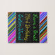 This fun, colourful and whimsical birthday themed puzzle design features a warm birthday wish like "Have a Great 73rd Birthday, Custom-Name!". The name can be personalised. There are also multicolored stripes at the top and bottom. A puzzle like this could be a fun way to deliver birthday wishes to somebody who is celebrating their seventy third birthday. [~Z0000268]