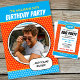 Create your own fun comic book style party invitation! Personalize it with a photo, message and event details. This editable template is designed for a 50th birthday BBQ, but all the text can be customized to fit a different celebration. It features retro fonts, bold lines, bright colors, comic dots, and a speech bubble. A casual and friendly design, perfect for an informal birthday bash! Printed colors: red, blue, orange, yellow and white.