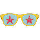 A pair of custom, adult style, stylish, cool, funky, yellow blue and red star party shades for fun parties, night clubs, and celebrations of all kinds - birthday, graduation, reunions, wedding, bachelor party, and more. Fun party swag that you can completely customise, personalise according to your choice.
