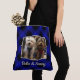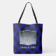 Fun Custom 2 Photo Frame Blue & Black Plaid Tote Bag
