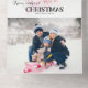 Fun, modern and unique custom Christmas calligraphy and modern lined serif font photo template with optional white filter and editable text fields.