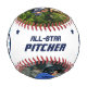 Fun and unique gift for your all-star baseball player. Custom personalised baseball features players' photos and a fun baseball emblem design customised with the baseball players' jersey number, name, year, and the team name or baseball league name. The baseball also features the player's position and your own custom text. Make a great birthday gift, a baseball league gift to celebrate the end of the season.