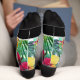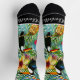 These fun tropical floral custom floral socks features your own name upon a lush background of tropical flowers, toucans, palm leaves, monstera leaves, pineapples, hibiscus, plumerias, and bird of paradise on a white background. These cute socks are perfect for your spa vacation and the yoga, gym, or exercise floor, or just lounging around the house. Photograph of the monstera leaves and palm fronds © by T.K. Goforth, all rights reserved.