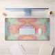 Vibrant and eye-catching colourful abstract pattern design desk mat. These customised desk mats are not just functional but also serve as a striking addition to your workspace. This design showcases a mesmerising blend of colours and abstract shapes, creating a visually stimulating environment that sparks creativity and inspiration. This bold and energetic pattern, has a personalisation option for your name or favourite quote.. Elevate your workspace with these artful boho desk mats and let the colours and patterns breathe new life into your daily routine.
