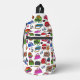 A cute illustrated marker art pattern of purses, bags, totes, jelly bags, knapsacks, nostalgia mini backpacks, handbags, messenger bags, sacks, designer fashion purse styles and more fun hand drawn illustration artsy design deluxe fun cute all-over style sling bag. Get an epic cartoon style sling bag today.