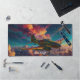 Fun Cute Plane in Colorful Clouds Desk Mat