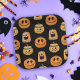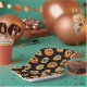 These fun Halloween party paper plates feature a black background with a pattern of cute orange pumpkins. This is the perfect design for a fun Halloween party!