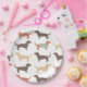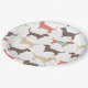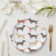 Perfect for anyone who loves dogs and weiner dogs, this patterned design features girly coral pink, teal blue, mint, yellow, cream, and brown colours with dogs wearing collars and sweaters with damask on them.