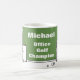 Office golfer gift. Personalise this mug with the name of the golf enthusiast, plus wording of your choice! Green background.