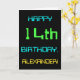 This simple and fun birthday greeting card design features a message like "HAPPY 14th BIRTHDAY, ALEXANDER!". Its look is inspired by the field of digital computing. The name on the front and the message on the inside can be customised. It could be sent or given to somebody who is celebrating their fourteenth birthday, and who perhaps works as a database administrator, a computer programmer, a network administrator, a software developer, an electrical engineer, or who otherwise enjoys using computers. [~Z0000100]