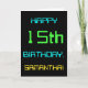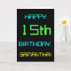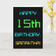 This simple and fun birthday greeting card design features a message like "HAPPY 15th BIRTHDAY, SAMANTHA!". It also features a fun appearance inspired by digital computing. The name on the front and the message on the inside can be personalised. It could be sent or given to somebody who is celebrating their fifteenth birthday, and who perhaps works as a database administrator, a computer programmer, a network administrator, a software developer, an electrical engineer, or who otherwise enjoys using computers. [~Z0000100]