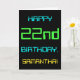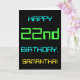 This simple and fun birthday greeting card design features a message like "HAPPY 22nd BIRTHDAY, SAMANTHA!". It also features a fun look inspired by digital computing. The name on the front and the message on the inside can be personalised. It could be sent or given to somebody who is celebrating their twenty second birthday, and who perhaps works (or worked prior to retirement) as a database administrator, a computer programmer, a network administrator, a software developer, an electrical engineer, or who otherwise enjoys using computers. [~Z0000100]