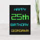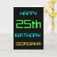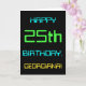 This simple and fun birthday greeting card design features a message like "HAPPY 25th BIRTHDAY, GEORGIANA!". Its appearance is inspired by the field of digital computing. The name on the front and the message on the inside can be customised. It could be sent or given to somebody who is celebrating their twenty fifth birthday, and who perhaps works as a computer system administrator, a computer programmer, a network administrator, an electrical engineer, a software developer, or who otherwise enjoys using computers. [~Z0000100]