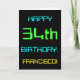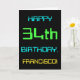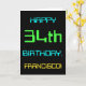 This simple and fun birthday greeting card design features a message like "HAPPY 34th BIRTHDAY, FRANCISCO!". Its appearance is inspired by the field of digital computing. The name on the front and the message on the inside can be personalised. It could be sent or given to somebody who is celebrating their thirty fourth birthday, and who perhaps works (or worked prior to retirement) as a computer system administrator, a computer programmer, a network administrator, an electrical engineer, a software developer, or who otherwise enjoys using computers. [~Z0000100]