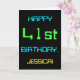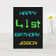 This simple and fun birthday greeting card design features a message like "HAPPY 41st BIRTHDAY, JESSICA!". Its look is inspired by the field of digital computing. The name on the front and the message on the inside can be customised. It could be sent or given to somebody who is celebrating their forty first birthday, and who perhaps works (or worked prior to retirement) as a computer system administrator, a computer programmer, a network administrator, an electrical engineer, a software developer, or who otherwise enjoys using computers. [~Z0000100]