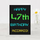 This simple and fun birthday greeting card design features a message like "HAPPY 47th BIRTHDAY, RICCARDO!". Its look is inspired by the field of digital computing. The name on the front and the message on the inside can be personalised. It could be sent or given to somebody who is celebrating their forty seventh birthday, and who perhaps works (or worked prior to retirement) as a computer system administrator, a computer programmer, a network administrator, an electrical engineer, a software developer, or who otherwise enjoys using computers. [~Z0000100]