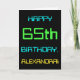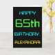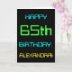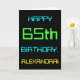 This simple and fun birthday greeting card design features a message like "HAPPY 65th BIRTHDAY, ALEXANDRA!". Its look is inspired by the field of digital computing. The name on the front and the message on the inside can be personalised. It could be sent or given to somebody who is celebrating their sixty fifth birthday, and who perhaps works as a computer programmer, a software developer, a database administrator, a network administrator, an electronics engineer, or who otherwise enjoys using computers. [~Z0000100]