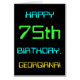 This simple and fun birthday greeting card design features a message like "HAPPY 75th BIRTHDAY, GEORGIANA!". It also features a fun appearance inspired by digital computing. The name on the front and the message on the inside can be customised. It could be sent or given to somebody who is celebrating their seventy fifth birthday, and who perhaps works as a computer programmer, a software developer, a database administrator, a network administrator, an electronics engineer, or who otherwise enjoys using computers. [~Z0000100]