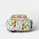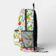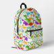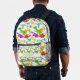 A lovely colourful cartoon dinosaur pattern. Bright and fun prehistoric design with a mix of dinosaurs, T-Rex, Tyrannosaurus Rex, Triceratops, Brontosaurus, Dilophosaurus, Iguanodon, Pteranodon ,Stegosaurus and dino eggs all on a white background. Personalise with the child's name to make this a special back to school backpack for those boys and girls who love dinosaurs.