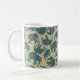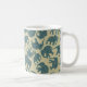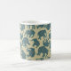 A fun White Ceramic Coffee Mug, with Elephant silhouettes, filled with a dark blue and burgundy Paisley pattern, on a beige background. Part of the Posh & Painterly 'Heffalumps' collection, this pattern can be adjusted to fit any Coffee Mug.