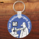 Fun button Keyring shows doctor checking patient's feet with a stethoscope. Personalise with name of your practice or surgery.