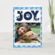 Celebrate the Holiday with this chic, cute and lovely minimalist photo card with your pet featuring the doggie paws " JOY " in sparking snowflakes pattern in baby blue background. Below photo features your custom greeting message and your names & dog name in modern typography. Happy Holidays and Happy New Year !