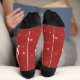 A fun way to celebrate the Christmas holiday season with these cute dog pet Santa Claus pattered socks in red with a Ho! Ho! Ho! shout out. Text can be changed to your preference.