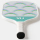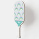 This design features dreamy pastel rainbows against a pale aqua background, with white initials in a fun text style against an aqua colour block. This fun pattern is great way to personalise your pickleball paddle and send your dinks over the rainbow. The paddle is shown with white trim, but other options are offered.