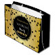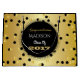 Add a personal touch to your gift giving. A beautiful gift bag with fun black and gold confetti, elegant gold embellishments and graduate's name.