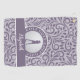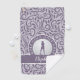 A matching purple band provides a space for a monogrammed name or custom text, making this towel a personalised accessory that stands out on the course. The background features a coordinating light purple shade adorned with a sophisticated dark purple pattern of modern swirls and leaves, adding a touch of contemporary flair.