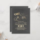 Funny chalkboard engagement party invitation with faux gold foil typography and love heart, arrow and engagement ring.
