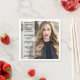 These napkins feature a full photo with a semi-transparent white band overlay with the wording "Class of 20xx graduate" in bold and feminine black fonts with the graduate's name and 5 customisable fun facts about the graduate with the caption "Did you know?".