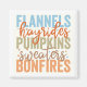 This vibrant and textured fall design highlights the quintessential elements of the autumn season with the words "Flannels," "Hayrides," "Pumpkins," "Sweaters," and "Bonfires." Each word is displayed in bold, uppercase letters, with a weathered texture that gives the design a rustic, vintage feel. The colour palette includes cool blues, warm oranges, earthy greens, and soft browns, capturing the diverse colours of fall. The words "hayrides" and "sweaters" are written in a flowing, cursive script that contrasts beautifully with the blocky text, adding a touch of elegance and movement to the design. Tiny star accents are scattered around the text, adding an extra layer of charm and playfulness.