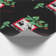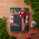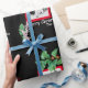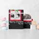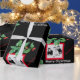 Just for fun, this year wrap your Christmas presents in paper personalised with your family photo and names. This black background paper features watercolor foliage with red berries and thin red frames around your family photo. "Merry Christmas" and your family's surname are in a white, sans serif font, while your family's first names (left to right, please) are in a small matching font in red.