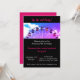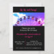 Image of a Ferris wheel on black background with party details on front. Back has pink background with a Ferris wheel icon.