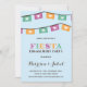 This modern, colourful engagement party invitation features a bright papel picado banner, ornate typography, and pretty calligraphy.