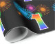 This fun, vibrant wrapping paper design features a colourful celebratory fireworks inspired pattern, along with the number "1" having a multicolored rainbow like gradient pattern, on a black coloured background. Wrapping paper like this might be used when wrapping gifts or presents being given for somebody’s first birthday, or perhaps for a couple’s first wedding anniversary, or some other 1st event. [~Z0000322]