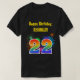 This fun, vibrant shirt design features a colourful pattern inspired by bursting celebratory fireworks, along with the number "22" featuring a multicolored rainbow inspired spectrum or gradient pattern. It also features a personalised name and event message, such as a "Happy Birthday" birthday greeting. A shirt like this might be worn by the guests at a birthday party being held to celebrate somebody’s twenty second birthday. [~Z0000332]