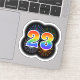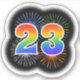 This fun, exciting sticker design features a colourful pattern inspired by bursting celebratory fireworks, along with the number "23" featuring a multicolored rainbow inspired spectrum or gradient pattern. A sticker like this might be used when celebrating somebody’s twenty third birthday, or perhaps a couple’s twenty third wedding anniversary, or some other 23rd event. [~Z0000362]