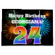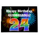 This fun, vibrant gift bag design features a colourful celebratory fireworks inspired pattern, along with the number "24" featuring a multicolored rainbow inspired gradient pattern, on a black coloured background. It also features a personalised name and event message, such as a birthday greeting. A colourful and joyful gift bag like this might be used when giving a gift or present to somebody who is celebrating their twenty fourth birthday. [~Z0000328]