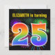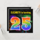 This fun, vibrant birthday party invitation design features a colourful bursting celebratory fireworks inspired pattern, along with the number "25" featuring a multicolored rainbow inspired spectrum or gradient pattern. The name on the front can be personalised. The back features personalised information about the party. Birthday party invitations like this might be used to invite guests to a birthday party being held to celebrate somebody’s twenty fifth birthday. [~Z0000337]